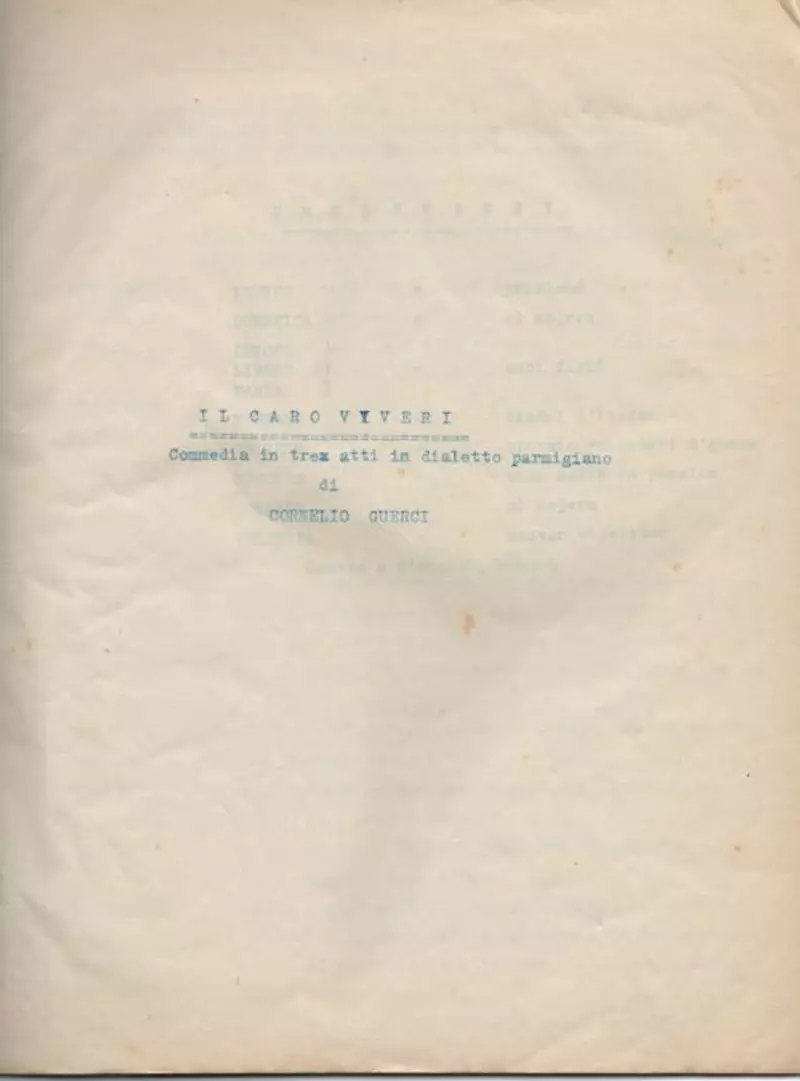 Guerci cornelio- Il caro viveri 2 - commedia in tre atti in dialetto parmigiano