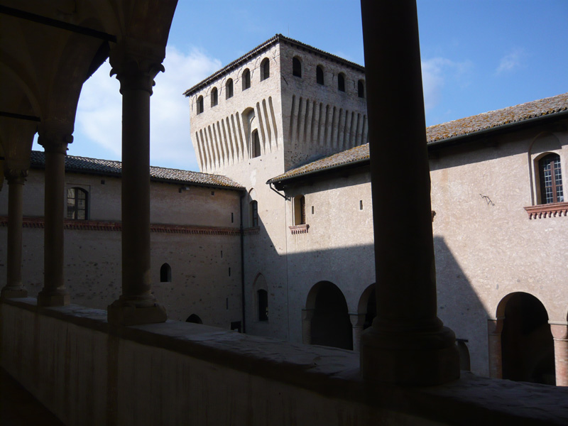Di altissima qualità anche il grandioso ciclo decorativo tardocinquecentesco a grottesche realizzato da Cesare Baglione e la sua scuola: le sale di Giove, degli Angeli, dei Paesaggi, il salone degli stemmi ed il magnifico salone degli acrobati. L’intero complesso, che avvicenda a queste preziosissime sale suggestivi ambienti di servizio quali le cucine e le scuderie, è distribuito su due piani attorno al Cortile d’Onore, oggi teatro di importanti spettacoli ed eventi estivi. La struttura castellana è dotata di un ampio ed interessante sistema sotterraneo di segrete, aperte alle visite in alcune straordinarie occasioni; i recenti restauri hanno inoltre reso nuovamente fruibili gli originari e panoramici camminamenti di ronda.