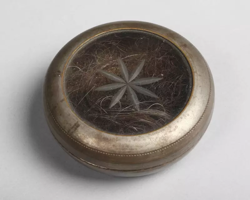L'oggetto, che era forse in origine una scatolina porta-tabacco, fu poi impiegato da Faustino Tanara come custodia per ricordi personali. I capelli potrebbero appartenere a Mario Toschi, giovane garibaldino langhiranese che il 21 gennaio 1871 morì di tetano per le ferite riportate nella battaglia di Digione, oppure a Teresita Tanara, figlia di Faustino e Virginia Costa, morta a soli tre anni e sette mesi, nel 1868