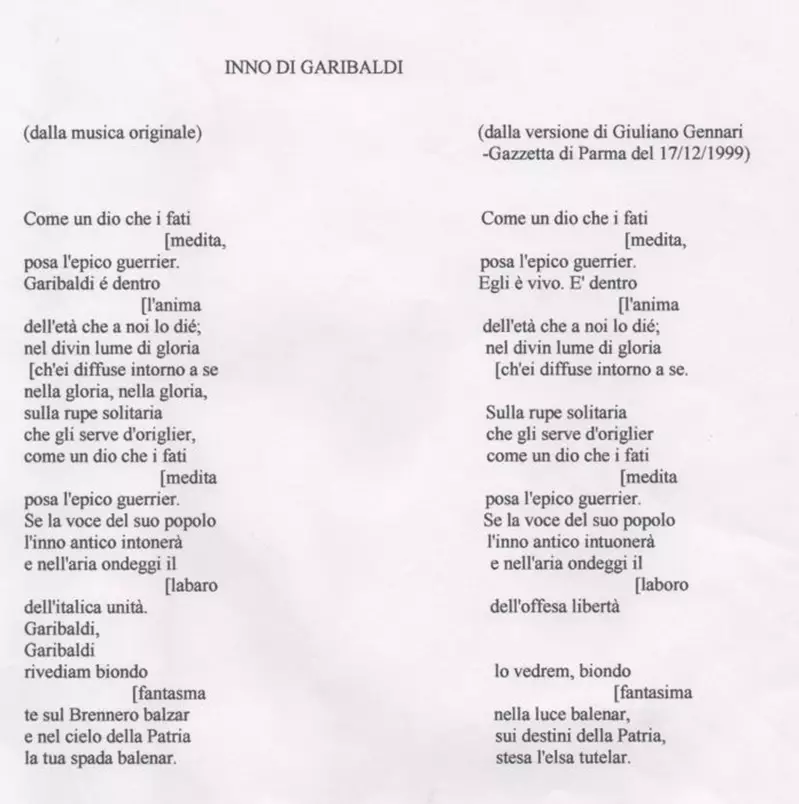 Giuliani Gennaro - testo Inno a Garibaldi revisionato
