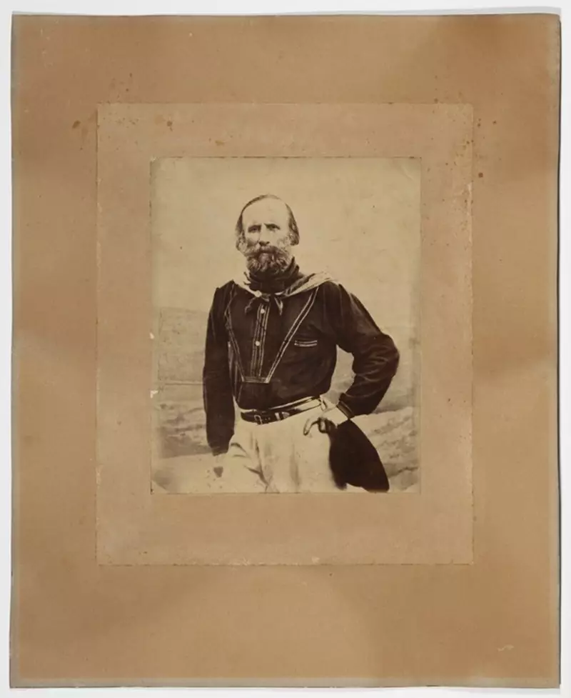 Piano americano, in piedi, in uniforme (scattata forse a Caprera). Nella sinistra tiene un cappello (a bombetta).